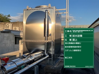 【作業内容】消火用補給水槽廻り 給水配管 保温材取付、板金 | ![]() |