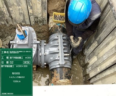 【割T字管設置工】 取付状況 トルクレンチ締め付け 100N.m |