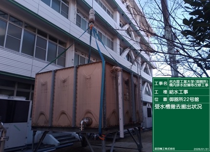 【作業内容】 受水槽撤去搬出状況 |