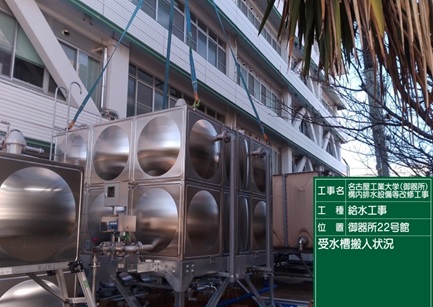 【作業内容】 受水槽搬入状況 |