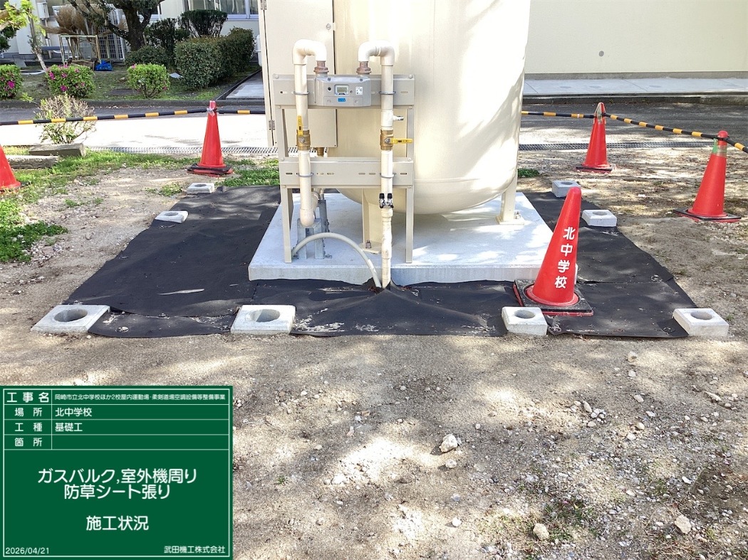 【内 容】 ガスバルク、室外機周り 防草シート張り |