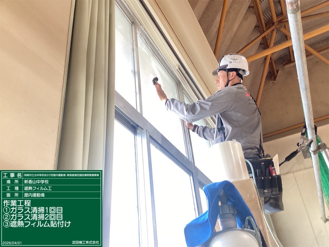 【内 容】 ①ガラス清掃1回目 ②ガラス清掃2回目 ③遮熱フィルム貼付け |