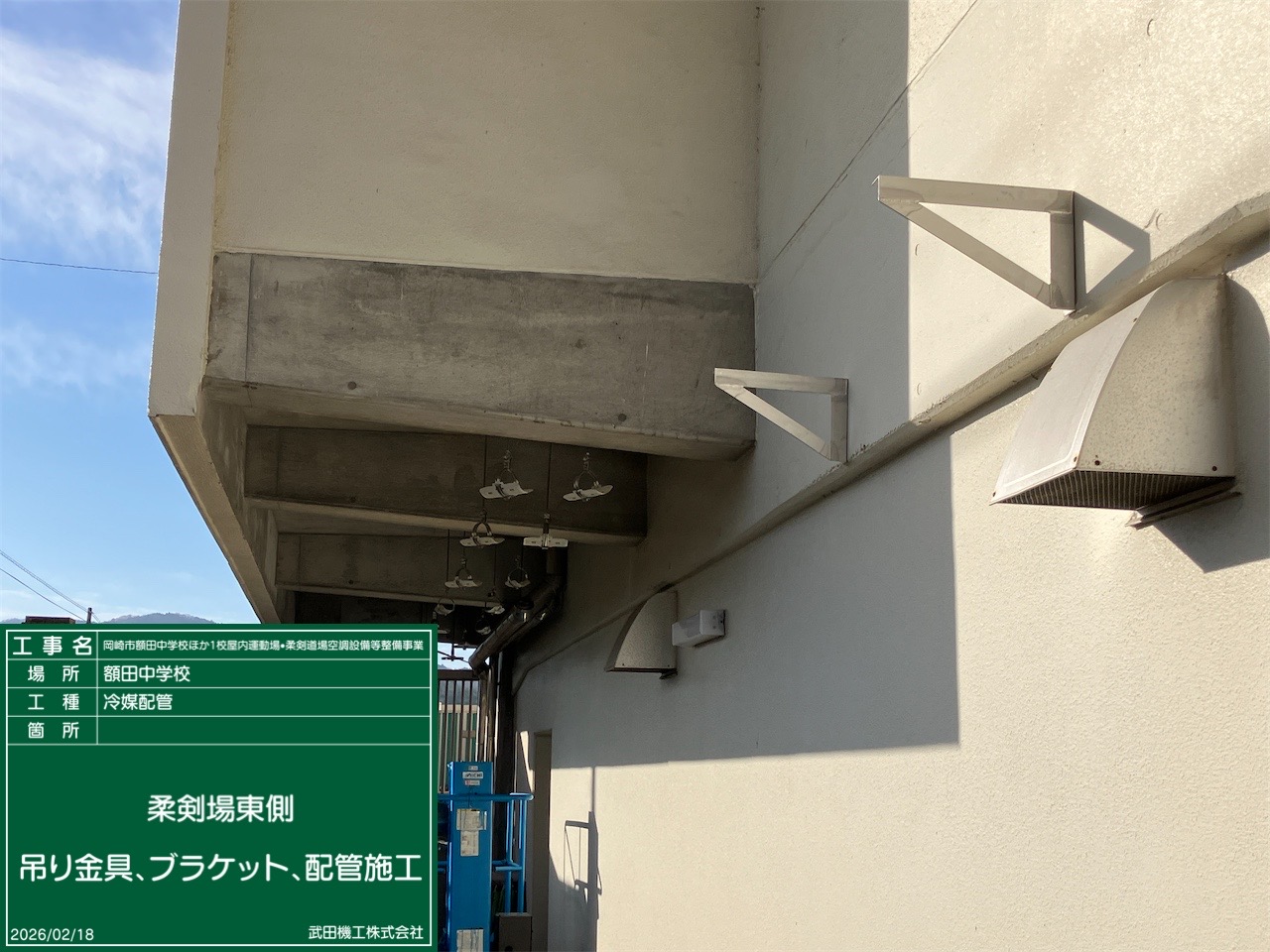 【内 容】 冷媒配管 吊り金具、ブラケット、配管施工 |