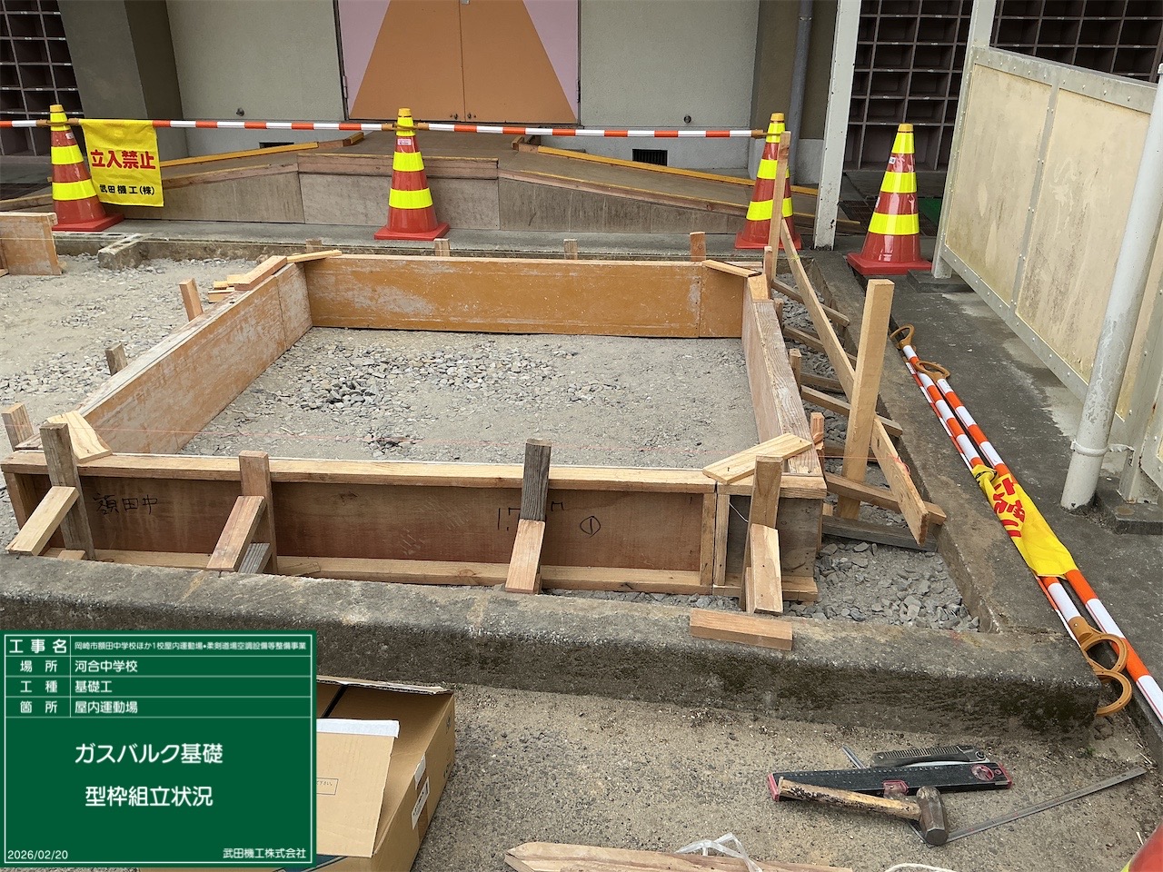 【内 容】 基礎工 ガスバルク基礎 基礎枠組立工事 |