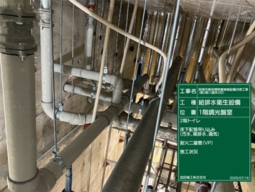 【作業内容】2階便所 給排水配管 吊り込み | ![]() |