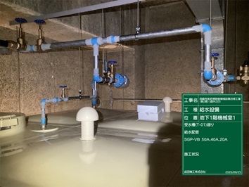 【作業内容】受水槽(飲用)廻り 給水配管 吊り込み状況 | ![]() |