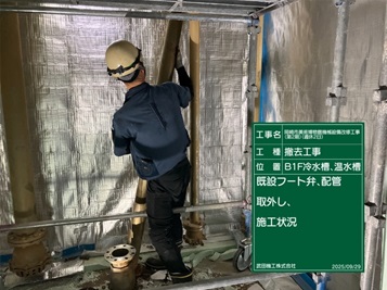 【作業内容】冷水槽、温水槽内 既設配管、フート弁 取外し作業 | ![]() |