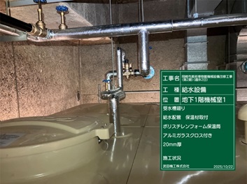 【作業内容】受水槽(飲用)廻り 給水配管 保温材取付 | ![]() |