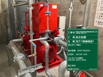 【作業内容】消火ポンプ廻り 給水配管 | ||||||