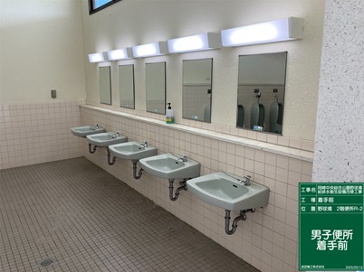 | 工事内容 | メインスタンド棟、屋外、スコアボード棟の便所改修、シャワー室改修、 換気設備、給排水設備、消火設備の改修 本工事は、10月まで一部施設を使用しながらの工事であるため、 施設利用者等の安全管理を徹底して行います。 また、同一敷地内で別業者(建築、電気、受変電)も工事を行っていることに加え、 野球場休止中においても中央総合公園でイベントがあるため、 各所と工程等、調整を図りながら工事を進めます。 |