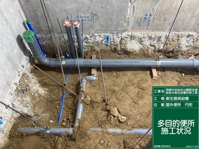 【作業内容】多目的便所配管施工状況 | ![]() |