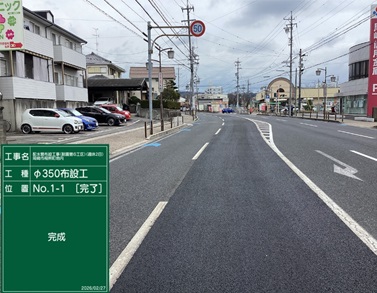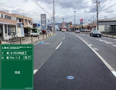 | 工事内容 | 稲熊橋北交差点から稲熊一丁目交差点までの市道日名橋線に耐震型水道管を布設する工事です。 工事概要 Φ450DIP-E(GX) L=1.2m Φ350DIP-E(GX) L=463.7m Φ300DIP-E(GX) L=2.3m Φ100DIP-E(GX) L=6.3m 近隣の皆様には工事期間中、ご迷惑やご不便をおかけいたしました事深くお詫び申し上げます。 長期間にわたりご協力頂きまして誠にありがとうございました。 |
