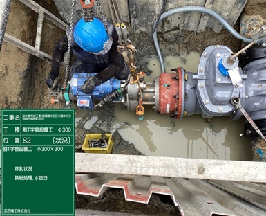 【割T字管設置工】 穿孔状況 |