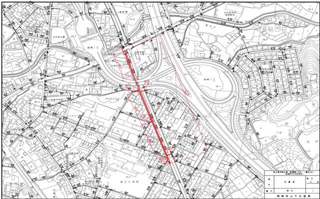 工事内容 | 岡崎市大平町の伝馬町線にて配水管を耐震管に布設替えする工事です。 Φ300DIP-E(GX) L=449.2mΦ50(PE)366.8m 工事中は近隣の皆様に騒音・振動及び交通規制等で何かとご迷惑をお掛けいたしますが、 ご理解・ご協力くださいますようお願い申し上げます。 |