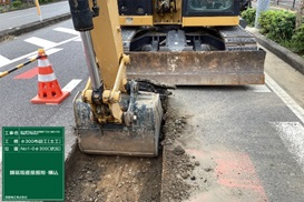 【内容】 舗装版掘削状況 車道部掘削位置状況 |